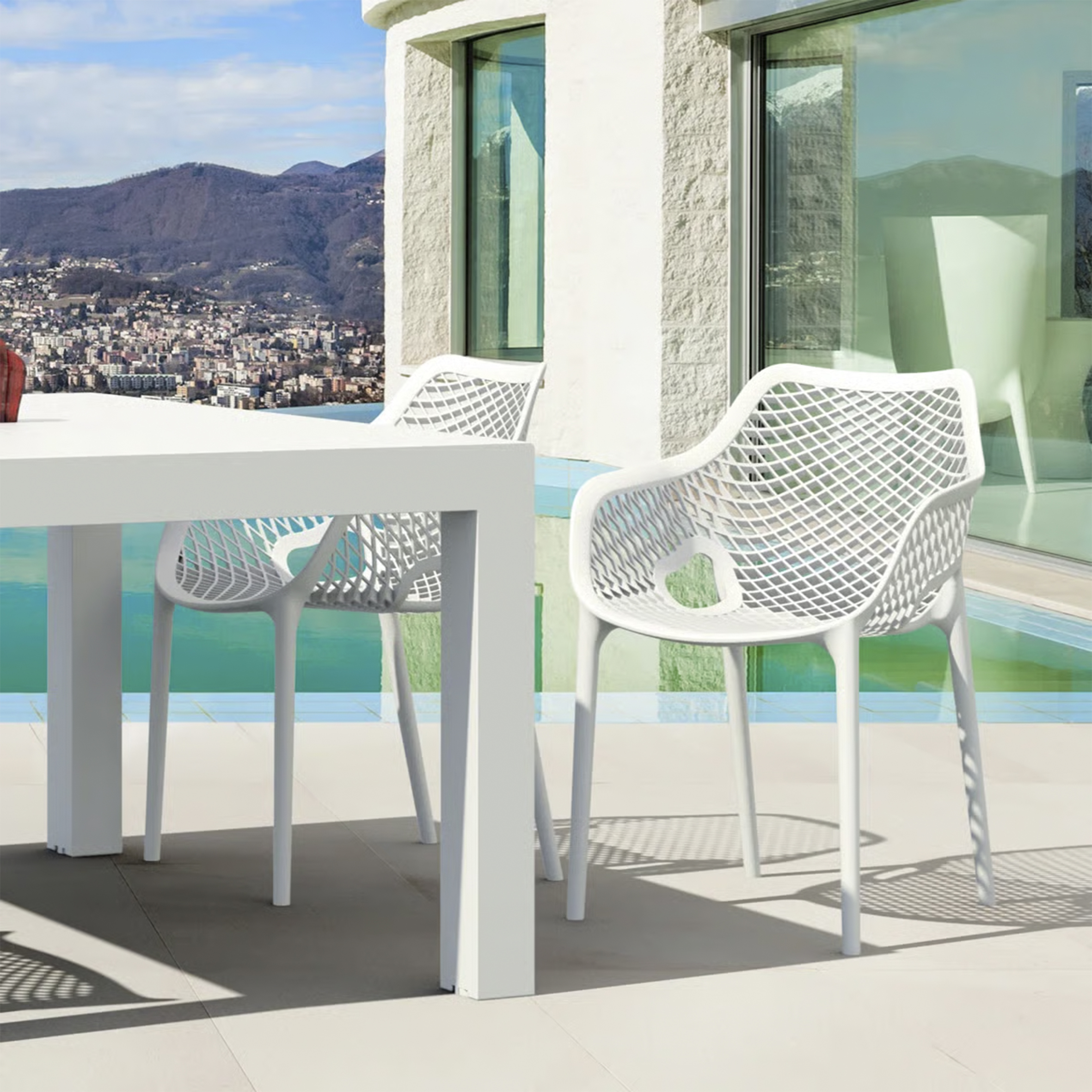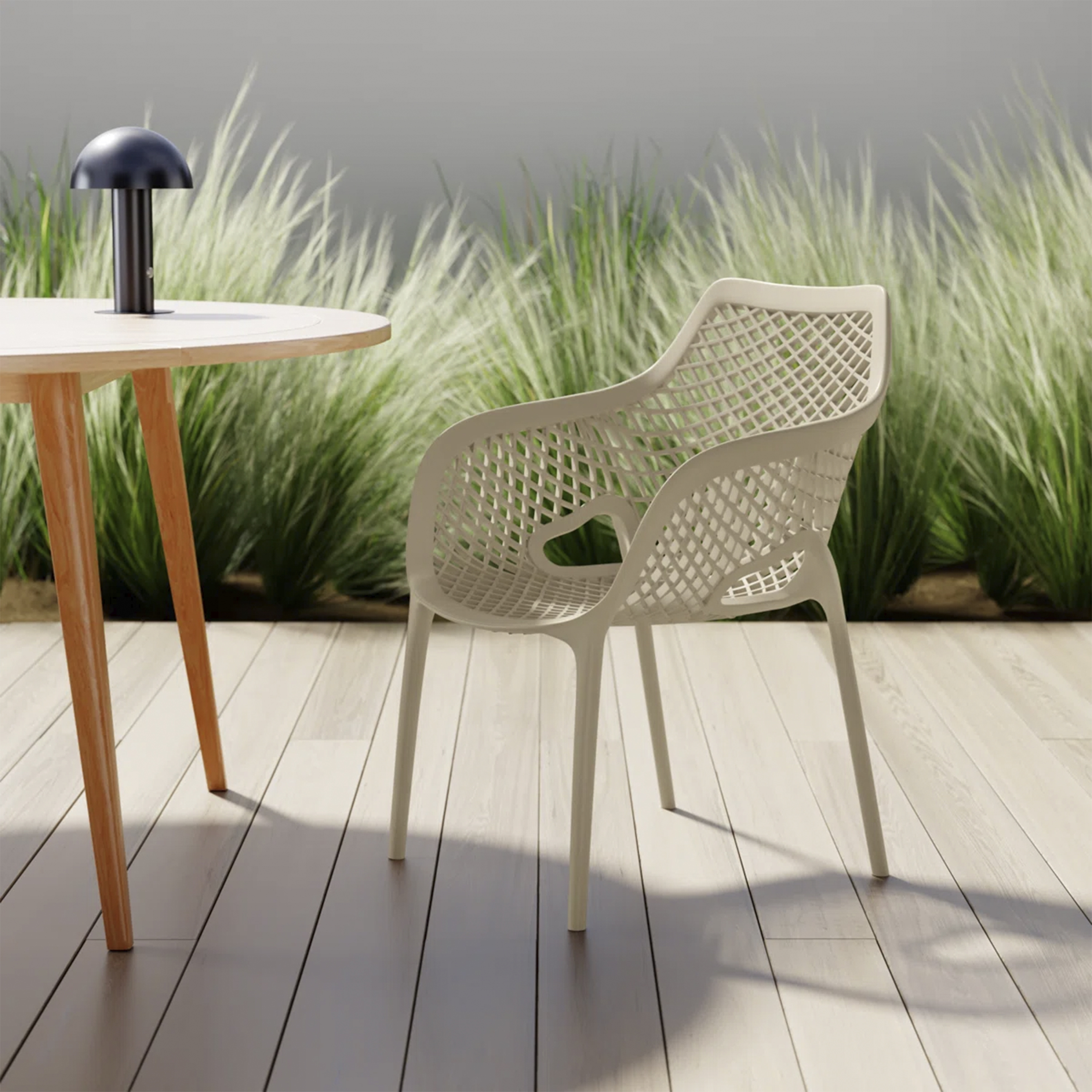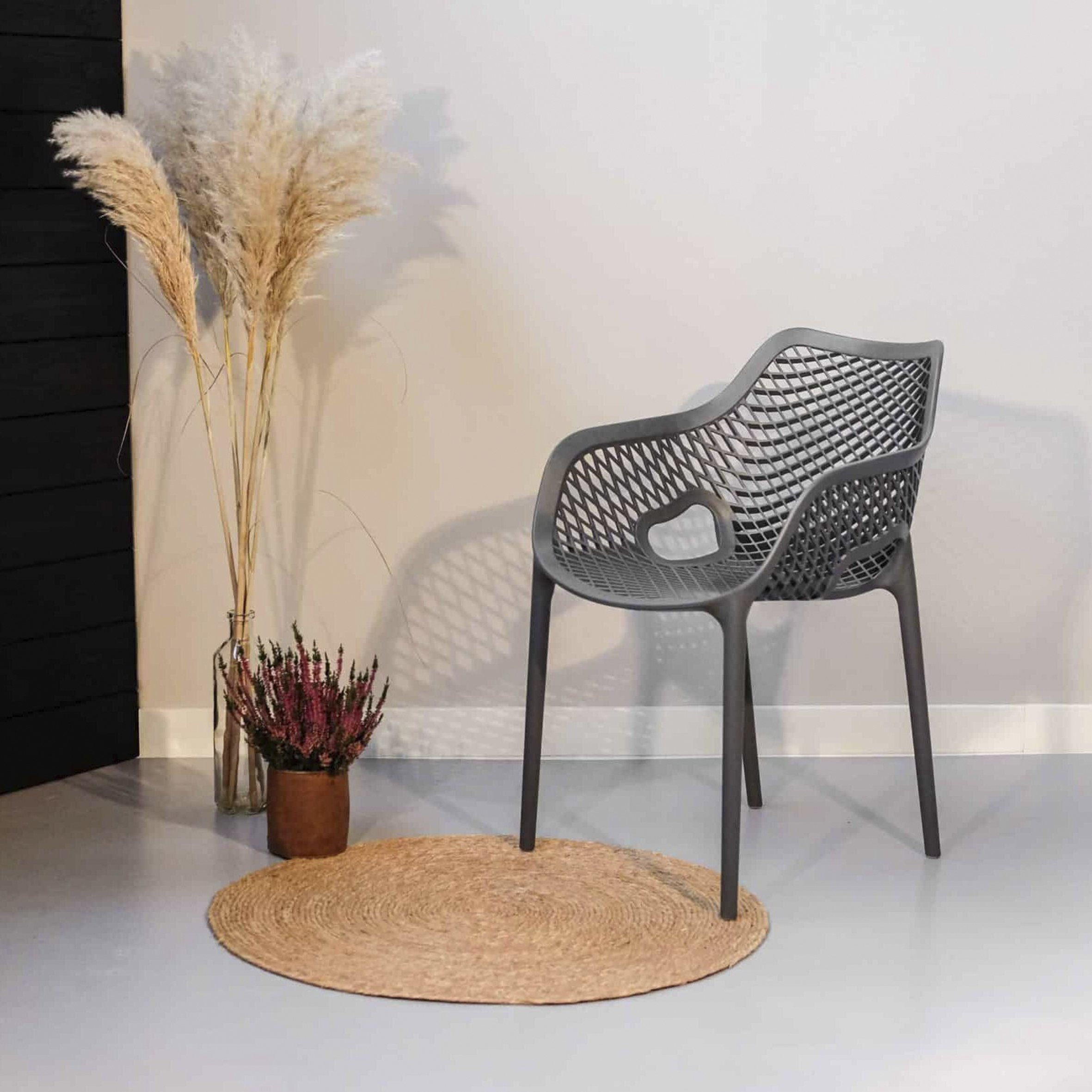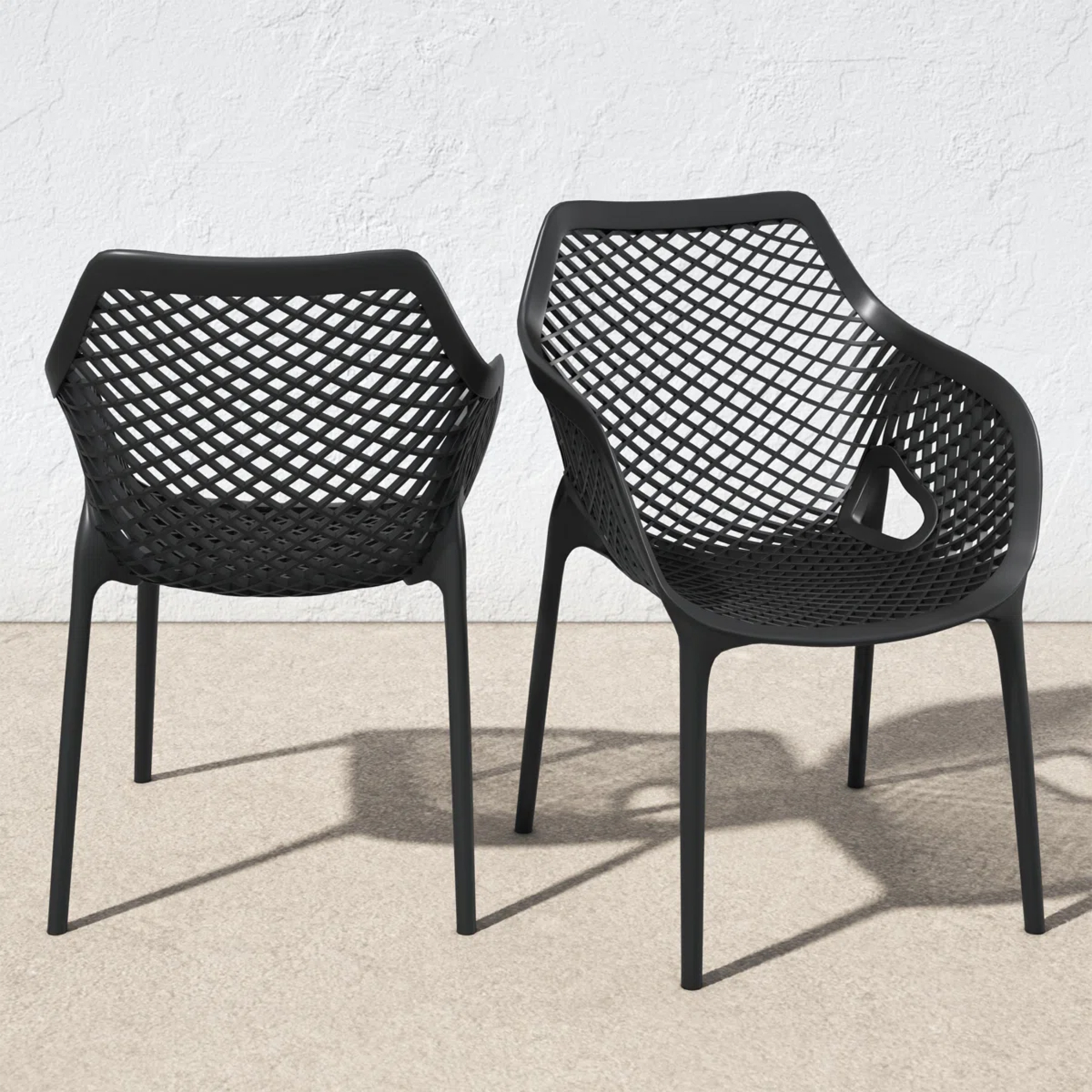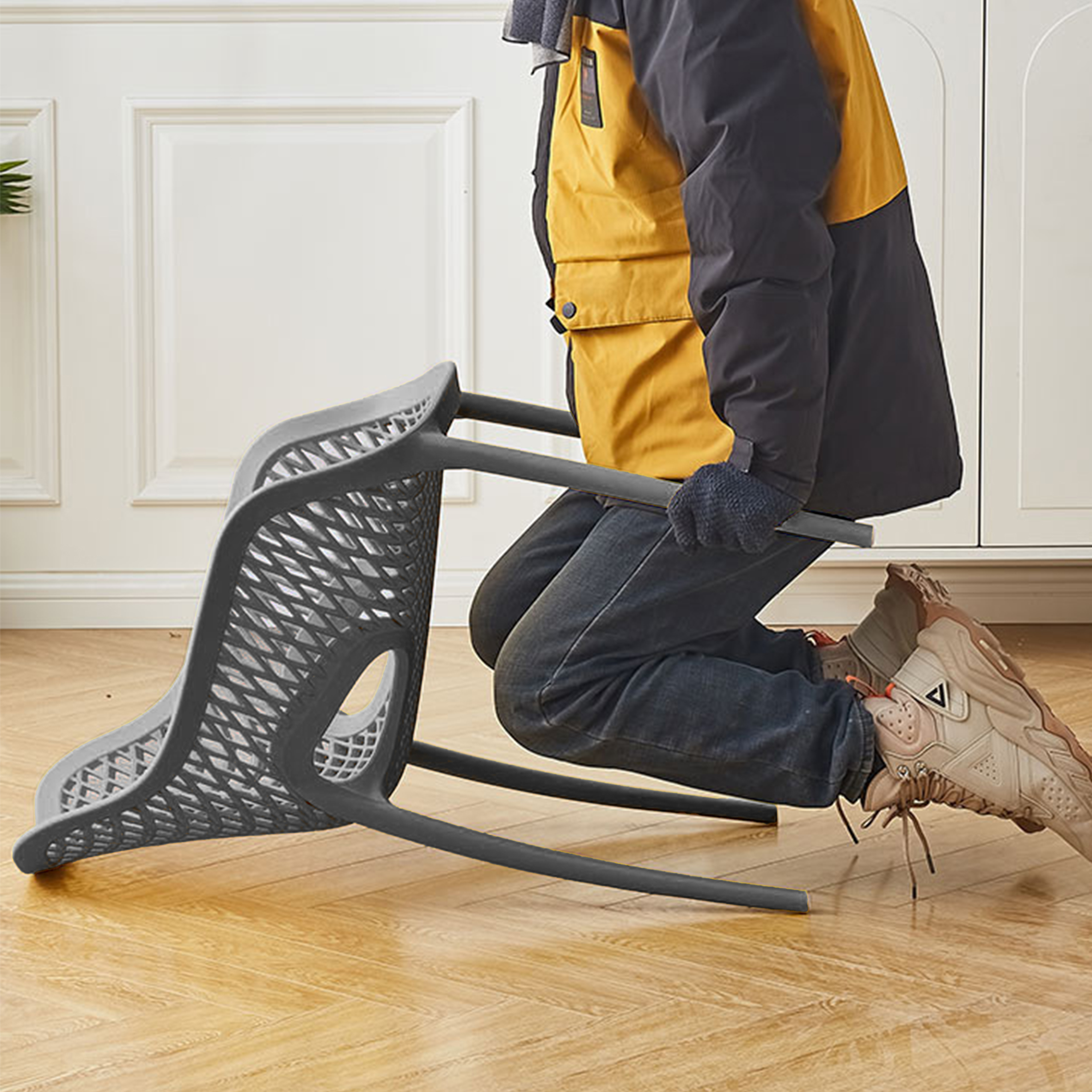 El material de las sillas es de polipropileno, un tipo de plastico muy versatil y ampliamente utilizado en la fabricaci{on de productos textiles, piezas de automoviles, electrodomesticos. Se caracteriza por su resistencia al calor y a la fatiga.
