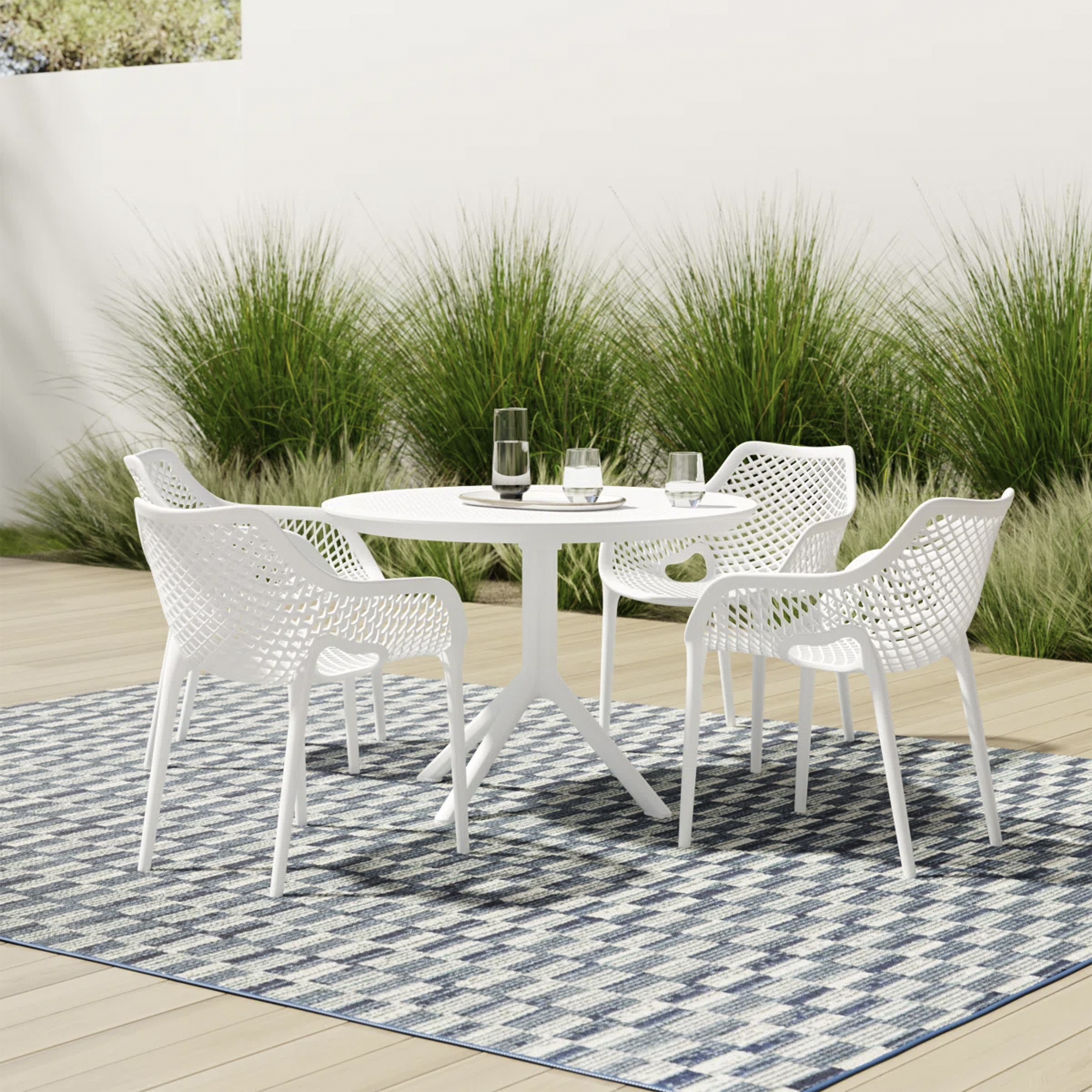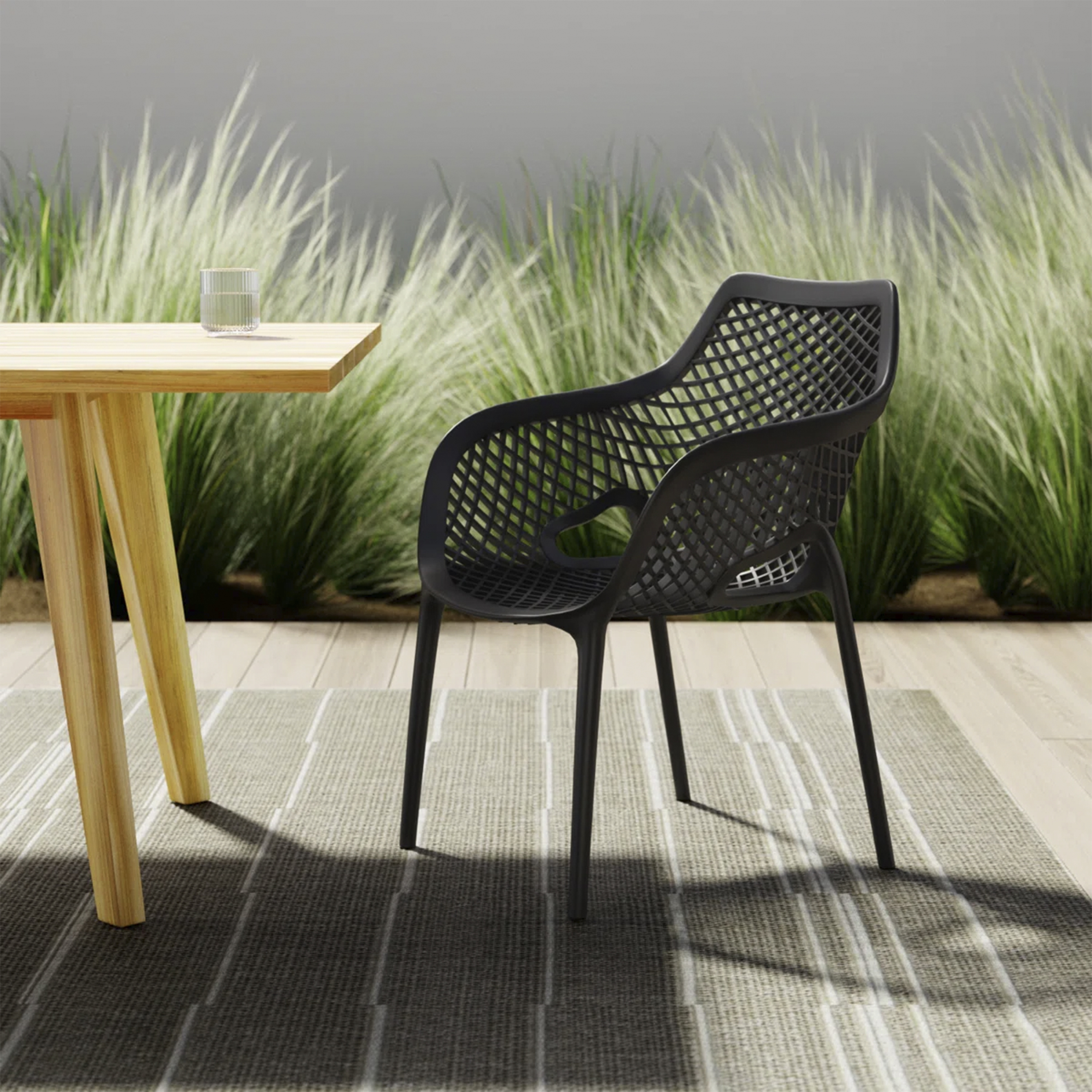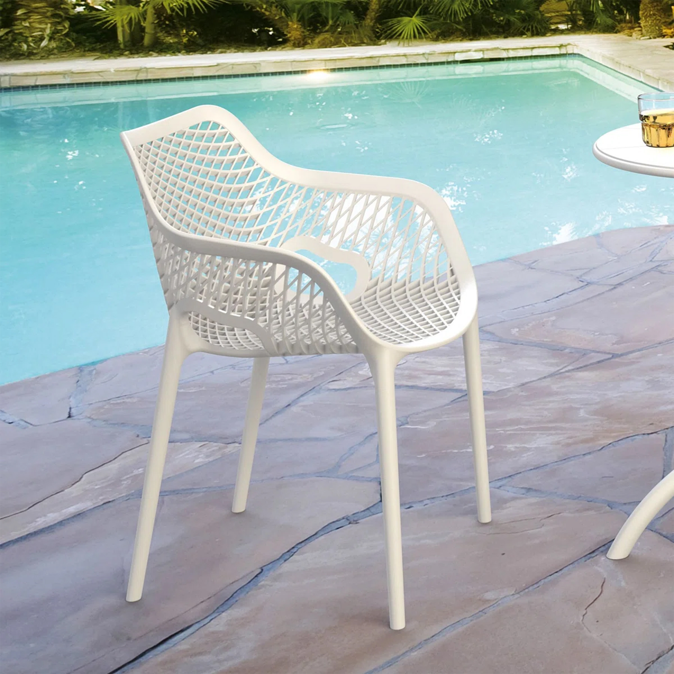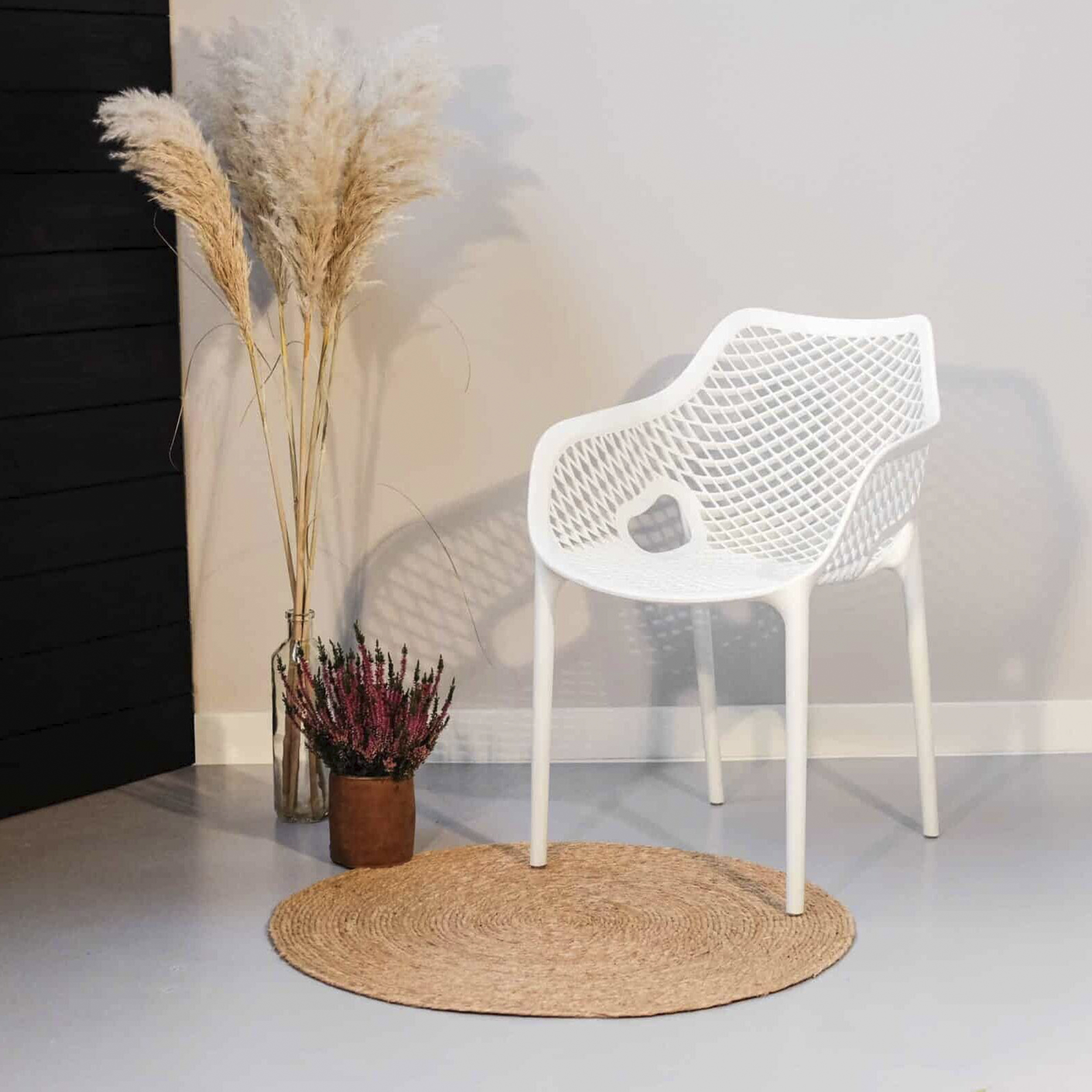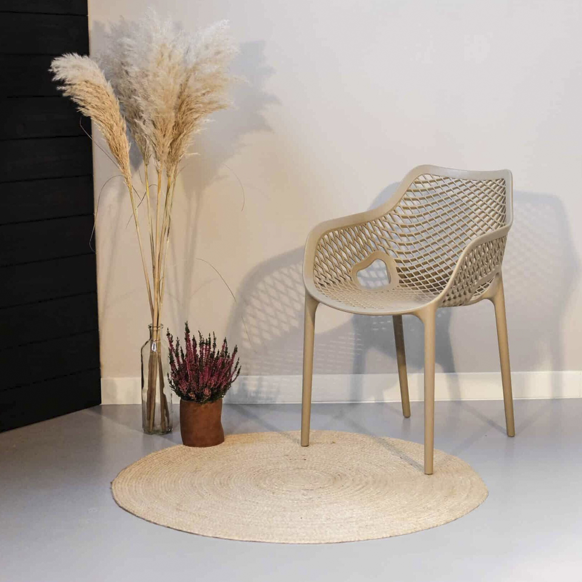 El material de las sillas es de polipropileno, un tipo de plastico muy versatil y ampliamente utilizado en la fabricaci{on de productos textiles, piezas de automoviles, electrodomesticos. Se caracteriza por su resistencia al calor y a la fatiga.