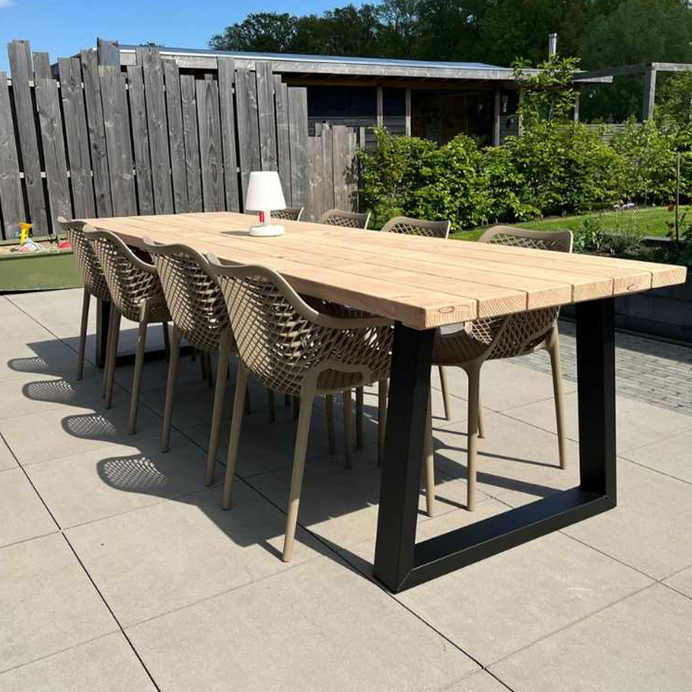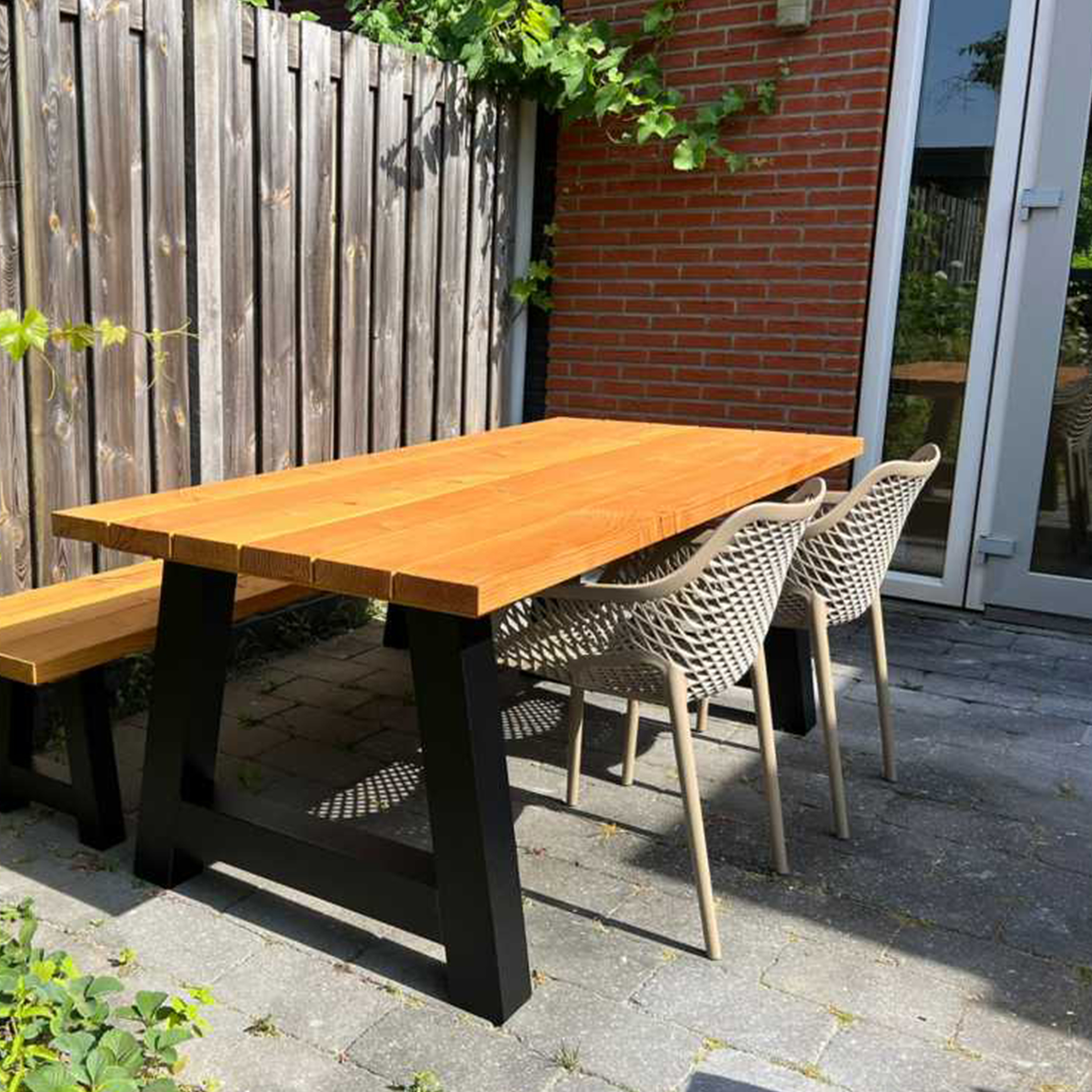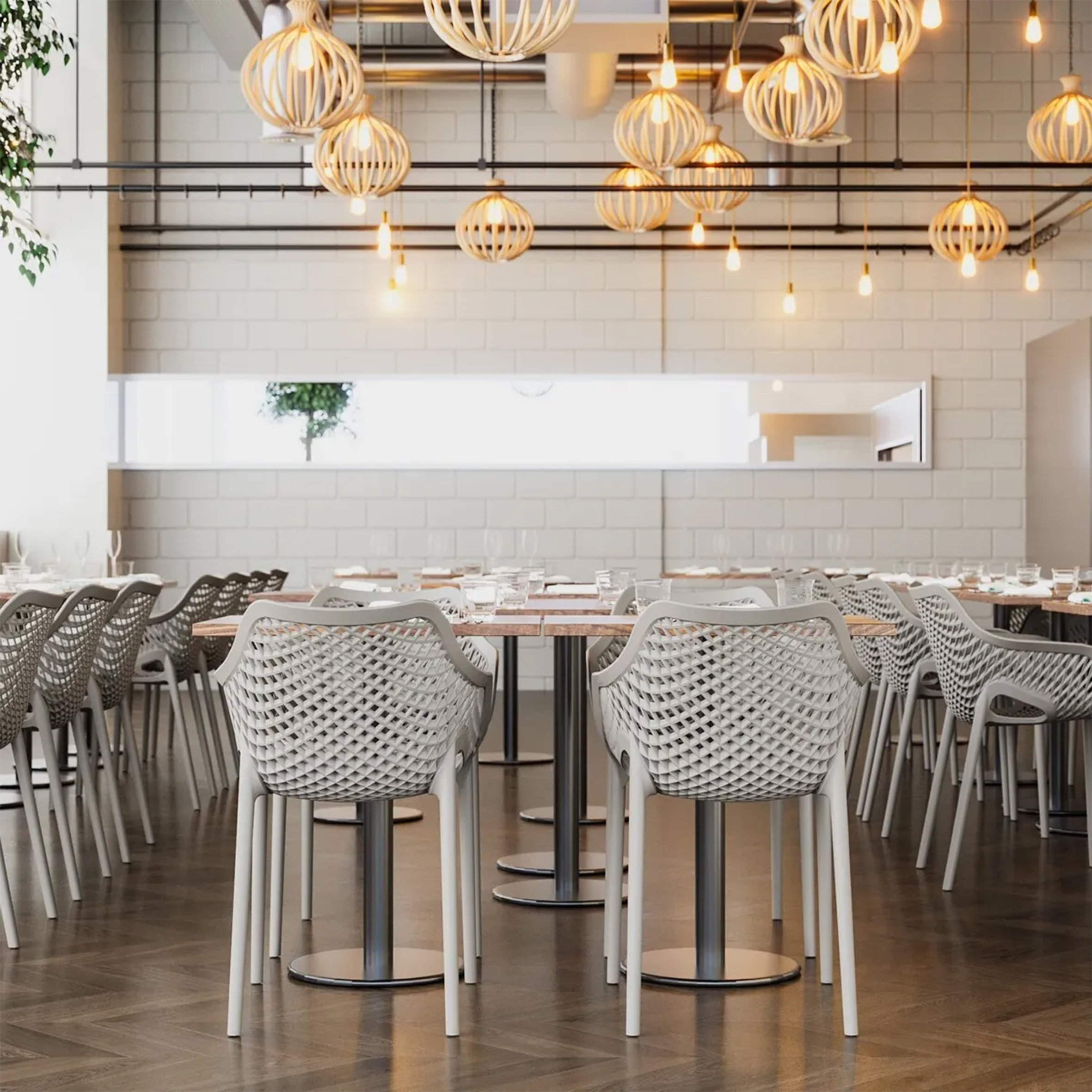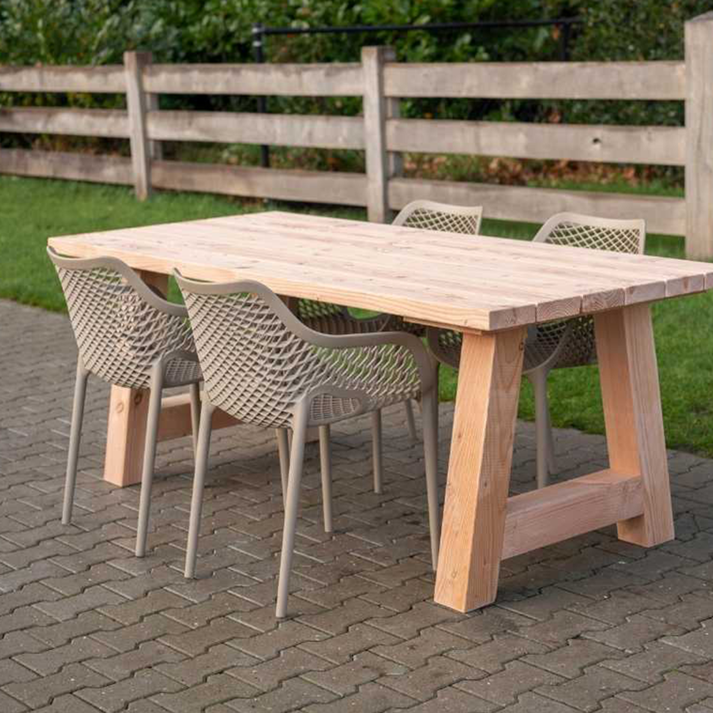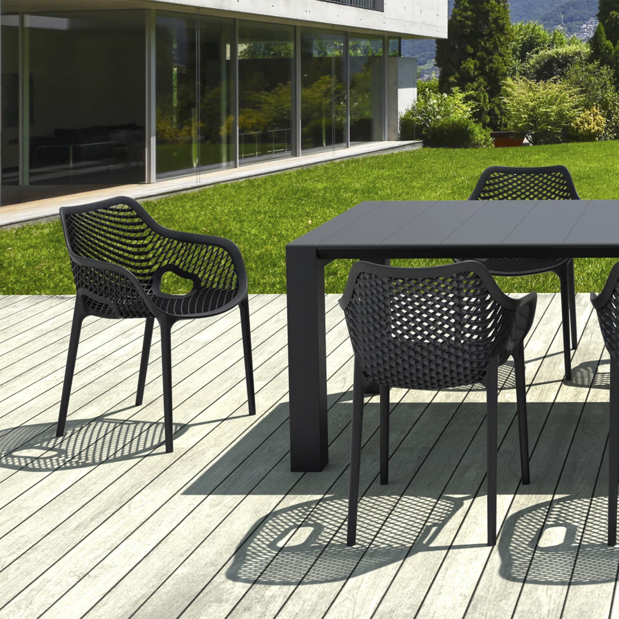El material de las sillas es de polipropileno, un tipo de plastico muy versatil y ampliamente utilizado en la fabricaci{on de productos textiles, piezas de automoviles, electrodomesticos. Se caracteriza por su resistencia al calor y a la fatiga.